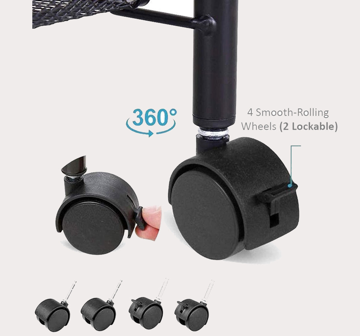Feature: 4 Smooth-Rolling Wheels (2 Lockable), Removable Hooks, Easy to Assemble & Clean, Sturdy & Stable, Stainless Steel Material, 2 Side Handles Are Easy to Move